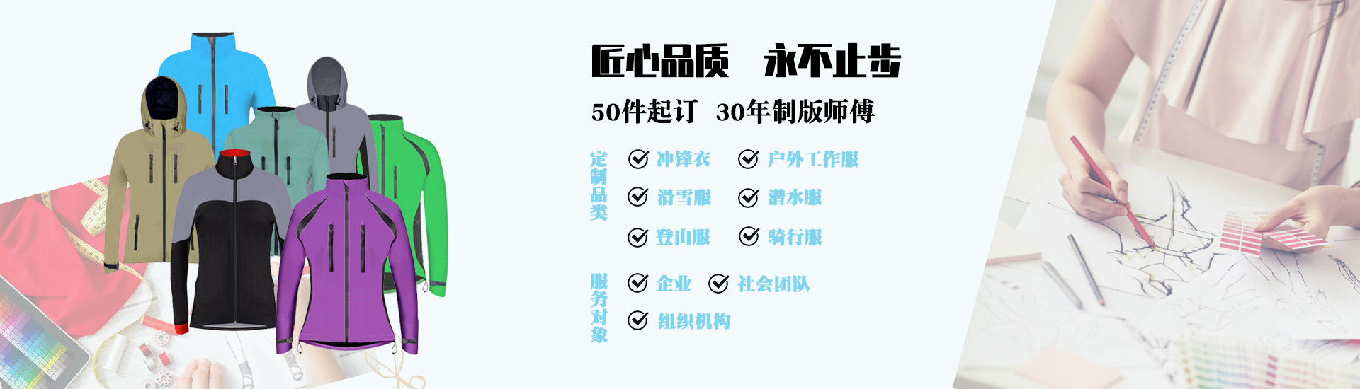2018-07-30/瀏覽量:413遵循客戶的樣衣/樣圖團體服裝要求進行加工定制,也可以根據(jù)客戶的要求配合打版各種三合一沖鋒衣、單層沖鋒衣、壓膠風衣款式。...
