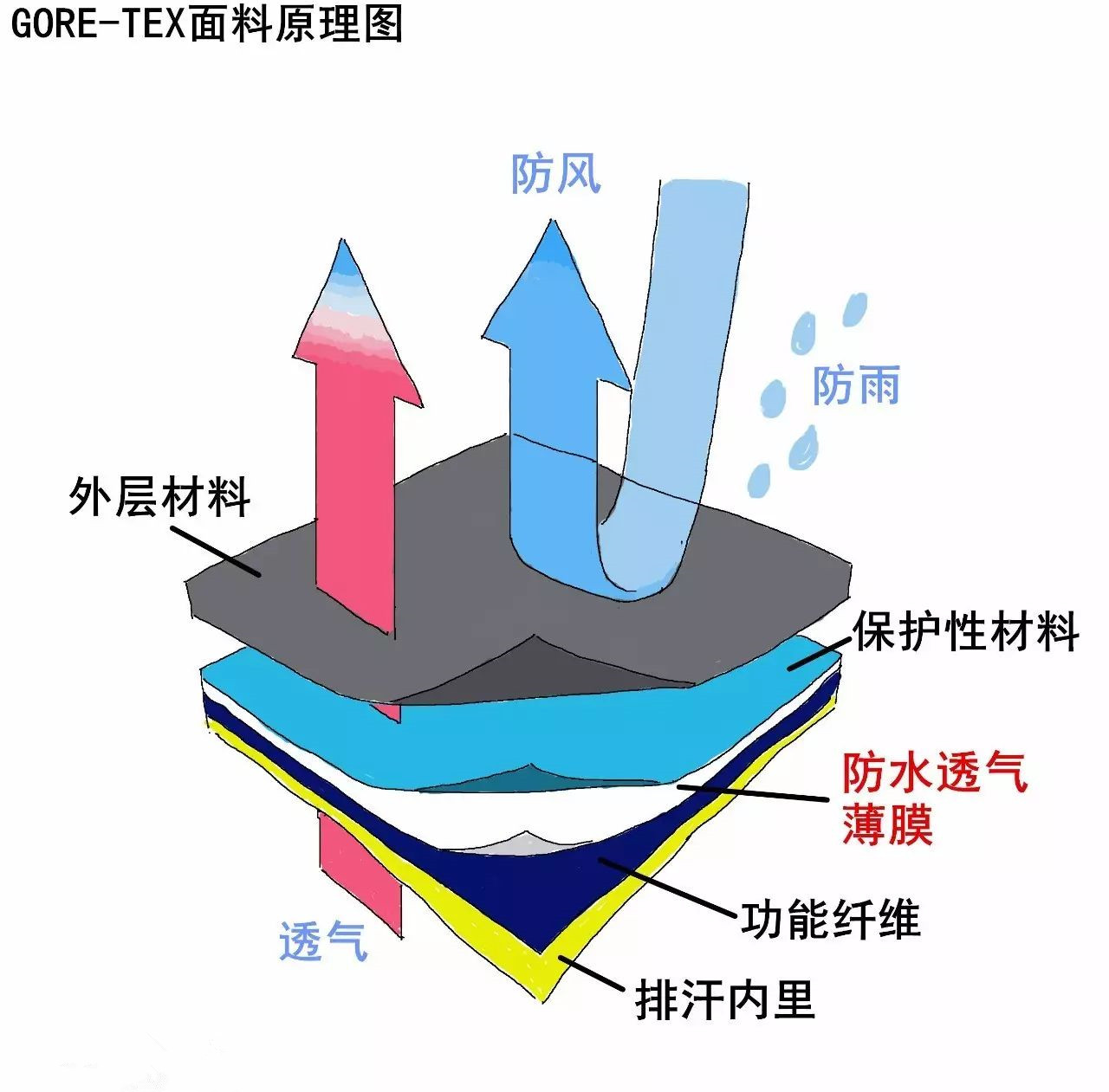即使今天沖鋒衣的主流面料名字各不相同,但是薄膜都是防水透氣的關鍵。