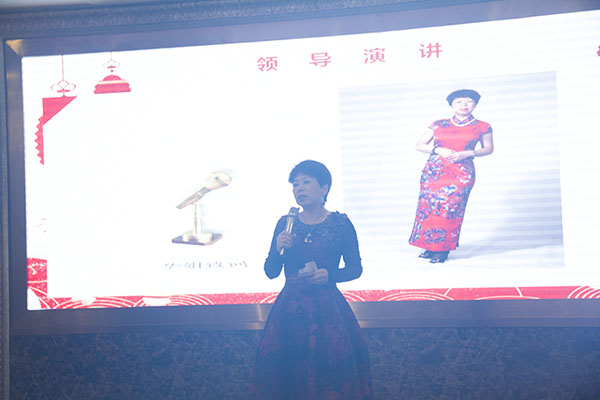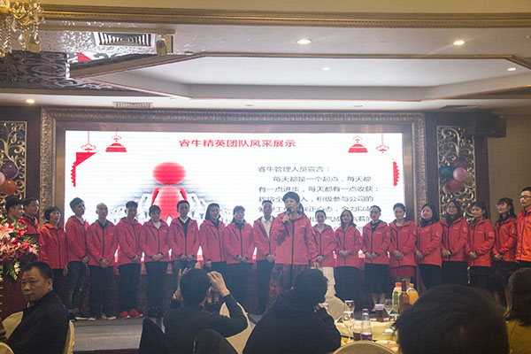 年會正式開始,睿牛總經理華姐上臺發表激情演講,總結2018年工作得失,市場發展前景,鄭地有聲地向大家描繪了睿牛制衣2019的新思路,新行動,“乘夢飛翔,再創2019輝煌”。