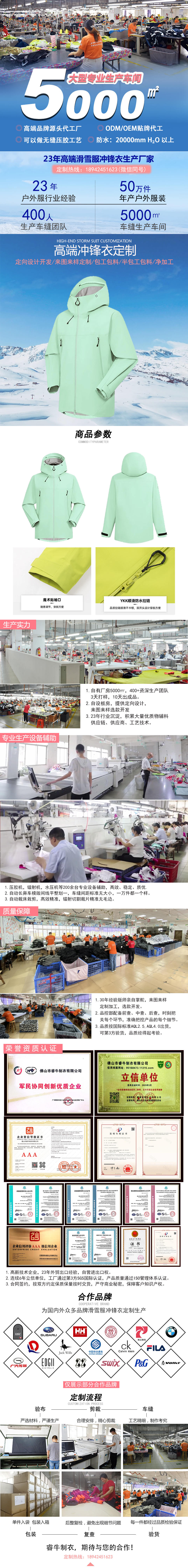 優質面料:專業高端沖鋒衣定制23年沉淀優質供應商資源,可根據客戶需求精選優質面料。