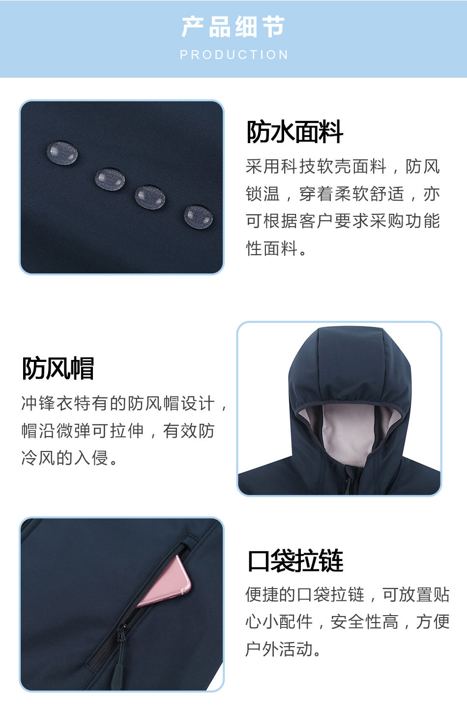 防水面料:采用科技軟殼面料,防風鎖溫,穿著柔軟舒適,亦可根據客戶要求軟殼沖鋒衣定制采購功能性面料。