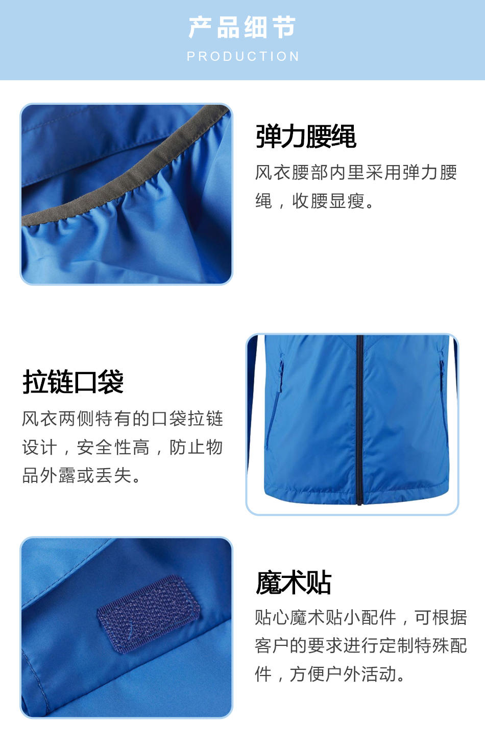 拉鏈口袋:團體風衣定制其兩側特有的口袋拉鏈設計,安全性高,防止物品外露或丟失。